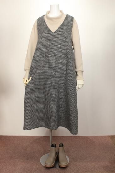 しっかり暖かさを感じるジャンパースカートです。千鳥チェックの柄は合わせるトップスを選びません。アームホールとてもゆったりしてます。動きやすさバツグンです!サイズを問わず着て頂けます。