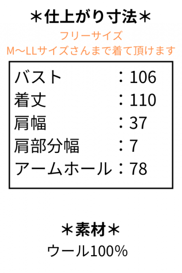 バスト106 着丈110 肩幅37 肩部分幅7 アームホール78