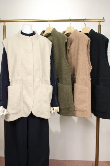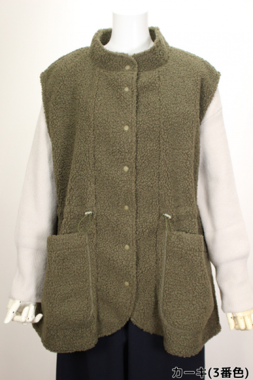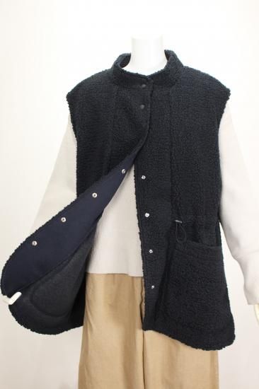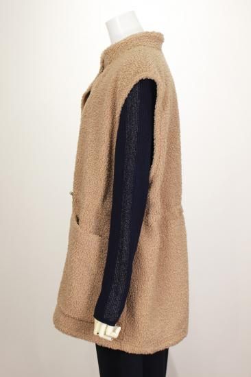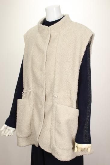 +2(プラスツー) スタンドネックのボアベスト ロング丈