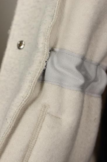 スタンドネック幅5cm 前ポケット左右 ウエストヒモ絞り調節OK 前スナップボタン7つ