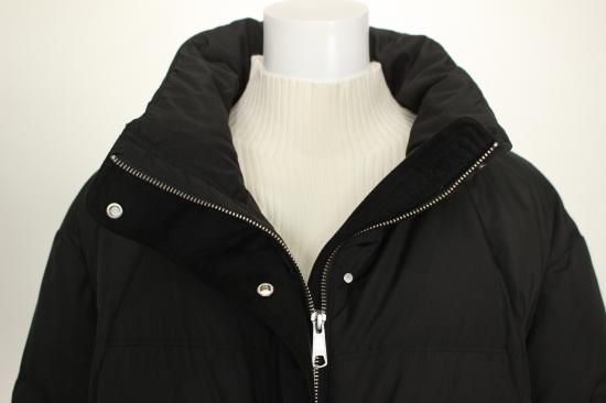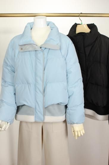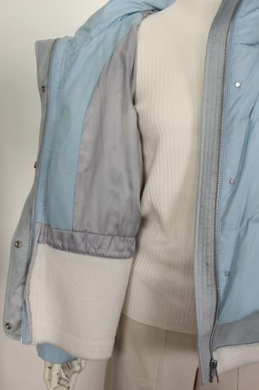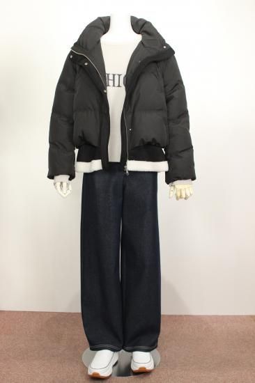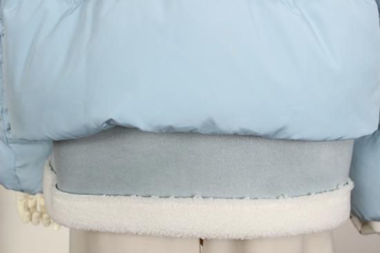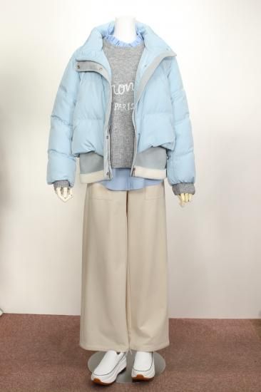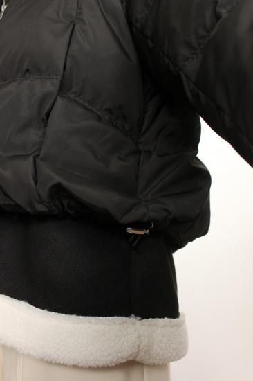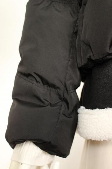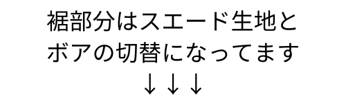 裾の切替部分はスエードとボアになっております。ショート丈で可愛らしいシルエットが作れます。軽い着心地でしっかり暖かいダウンジャケットです。若々しいコーディネートが作れますよ。