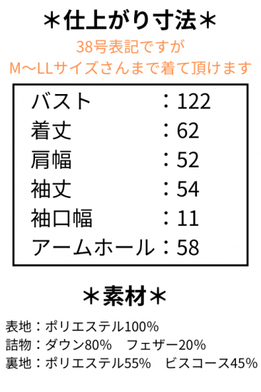 バスト122 着丈62 肩幅52 袖丈54 袖口幅11 アームホール58