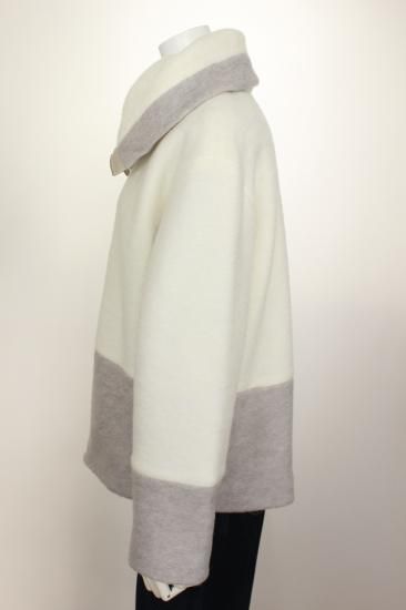 明るい色合いが冬コーデを可愛くしてくれます。立ち上がったお衿ですので、お首周りを温めてくれます。