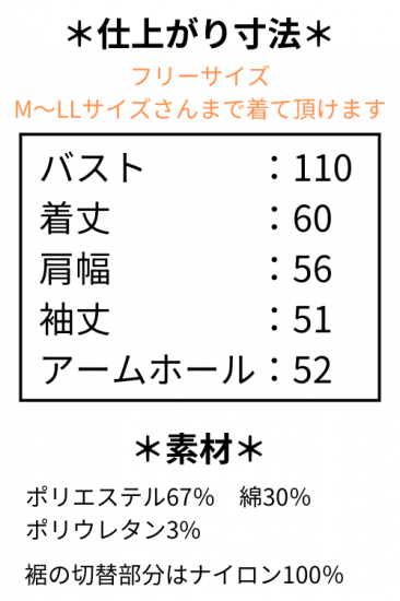 バスト:110 着丈:60 肩幅:56 袖丈:51 アームホール:52