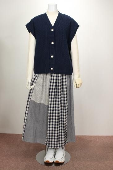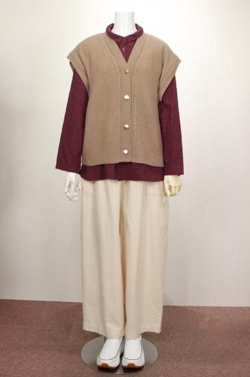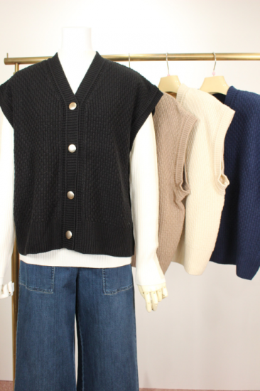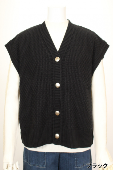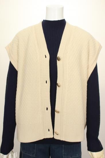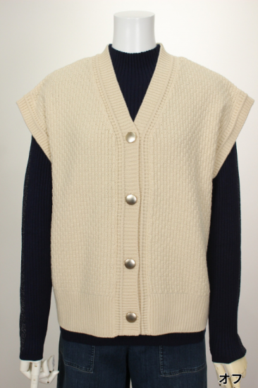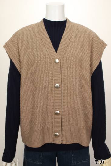 セモア ATELIER SIX ウール混のフレンチスリーブニットベスト 前開き 金ボタン