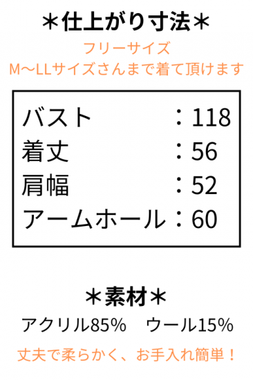 バスト:118 着丈:56 肩幅:52 アームホール:60