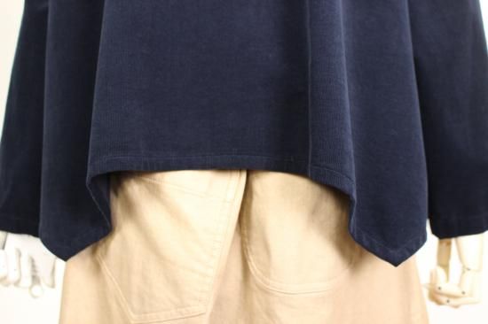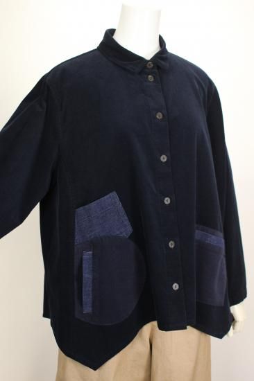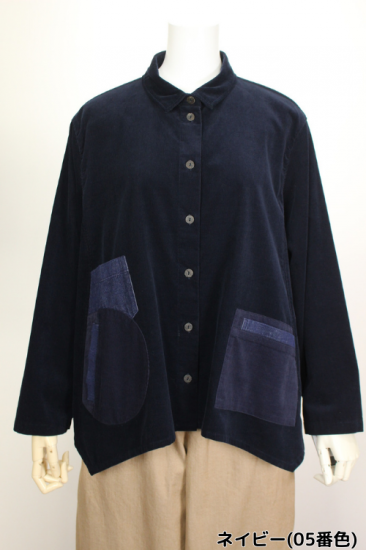ぬくもりを感じる細コーデュロイブラウス。ゆったりと幅広いサイズの方に着て頂けます。羽織りブラウスとしても着て頂ける厚さの生地です。