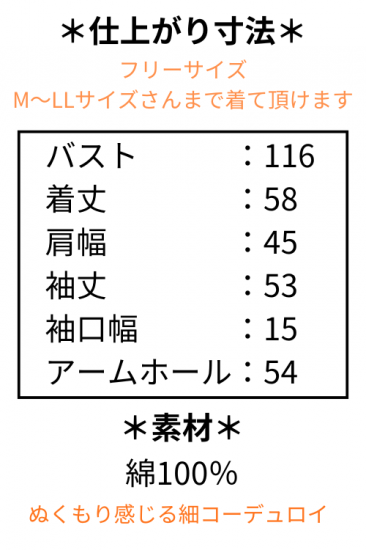 バスト116 着丈58 肩幅45 袖丈53 袖口幅15 アームホール54