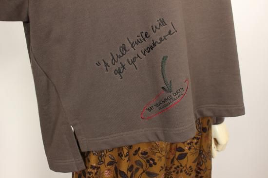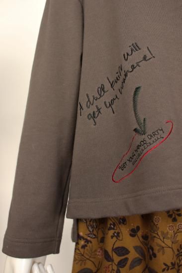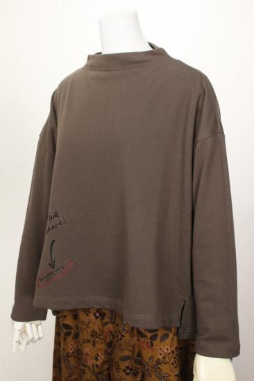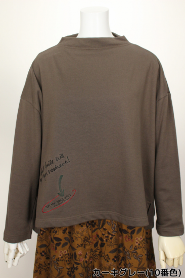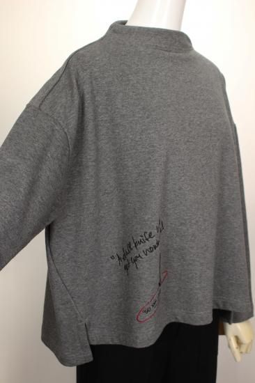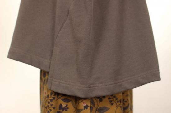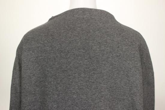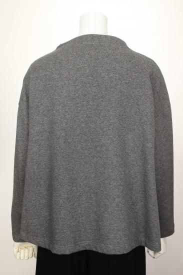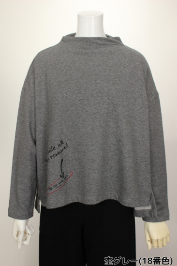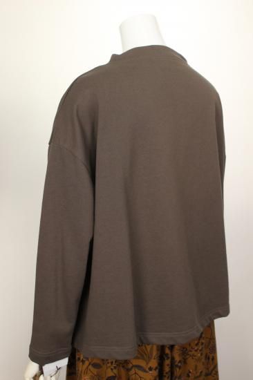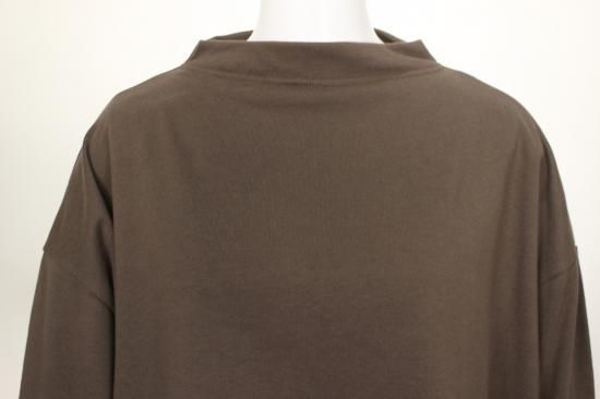 バスト周りゆったり、着丈ショートの若々しいシルエットのスウェットカットソーです。少しボトルネックになっております。お首周りを優しくカバーできるデザイン。