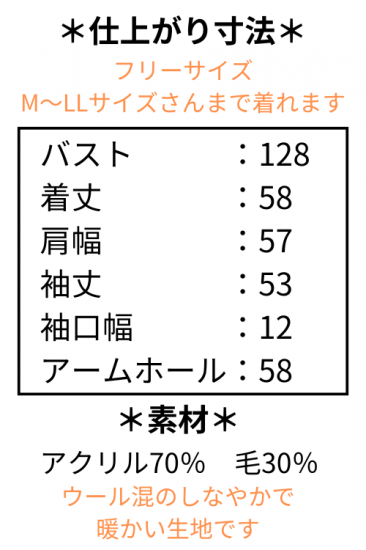 *仕上がり寸法*バスト128 着丈58 肩幅57 袖丈53 袖口幅12 アームホール58