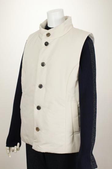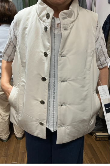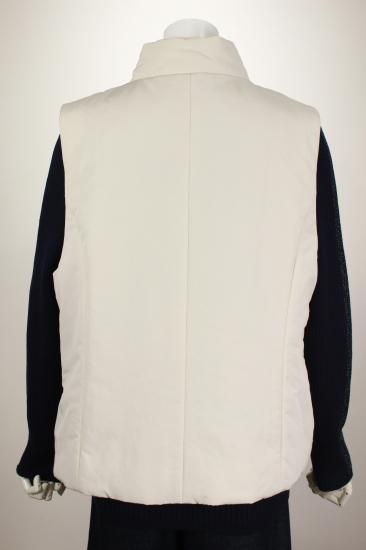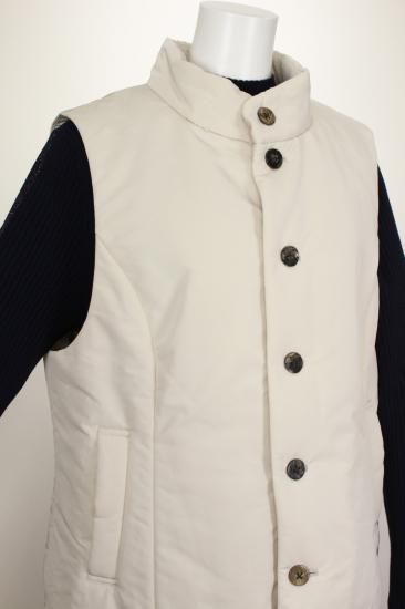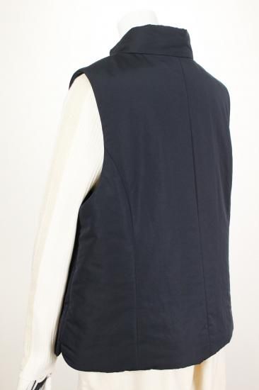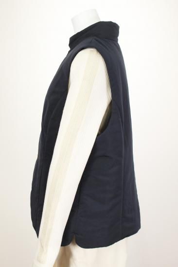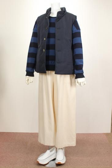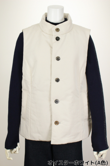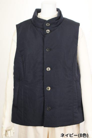軽くて暖かい中綿のベスト。お首周りと前開き部分の裏地がフリース生地になっていて暖かいです。冬のカジュアルコーデに合わせやすいシンプルなデザインです。