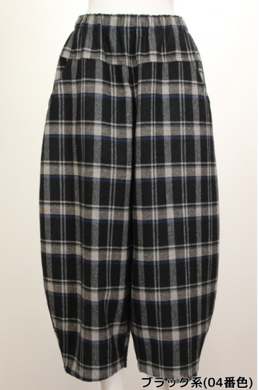 イフクラージュ ウエスト総ゴムチェック柄バルーンパンツ 総裏付き
