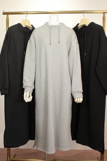 超暖か!毛布のようなフワフワ裏地のワンピース。落ち感のある生地ですので、体のラインを拾いません。優しく沿い上がったボトルネックデザインがお首をソフトにカバーしてくれます。このワンピースにアウター等組ませて、最強暖かコーデのできあがりです!