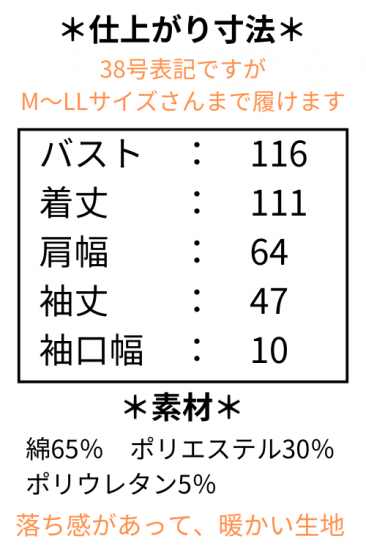 (38号表記ですが、M〜LLサイズさんまでフリーサイズ感覚で着て頂けます。)
